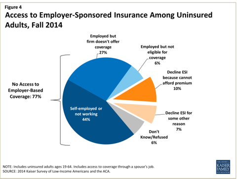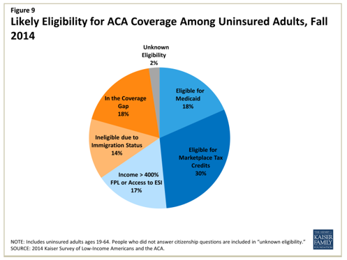 Despite the fact that Obamacare’s major provisions went into effect at the beginning of 2014, about 30 million people remain uninsured in the United States. That’s partly because some people are ineligible for coverage because of their immigration status. But, according to a new issue brief from the Kaiser Family Foundation, it’s also because a lot of Americans are going without insurance even though they’re supposed to be eligible under the health law.
