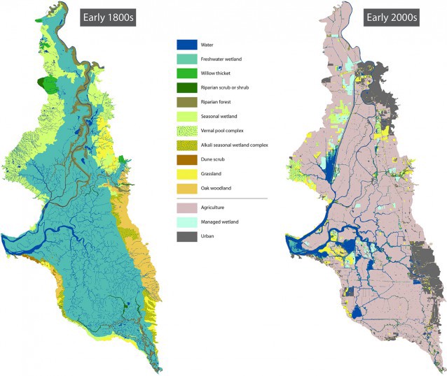 Agricultural use has dominated what used to be a major wetland area , as detailed in the San Francisco Estuary Institute report “A Delta Transformed.”