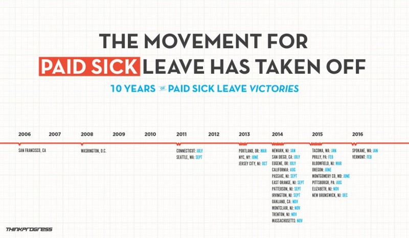 The victory is hard-won for state activists, who have been pushing for a bill for the last decade. But the issue really gained traction among state lawmakers about three years ago. Vermont is also the home state of Democratic presidential candidate Bernie Sanders, who has been a big proponent of paid sick leave legislation at the national level.