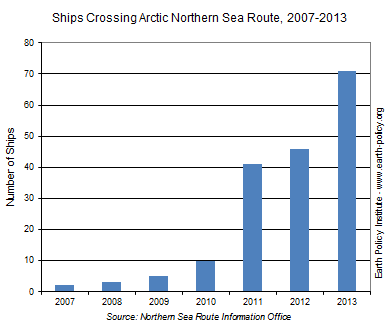 Less and less sea ice, in turn, means more traffic can pass through, over a longer travel season. Already, there has been a surge in ships in the Arctic. From 2008 to 2012, ship traffic through the Bering Strait increased 117 percent, and it is expected to increase even more in the coming years. This is putting pressure on regulators to come up with good solutions.