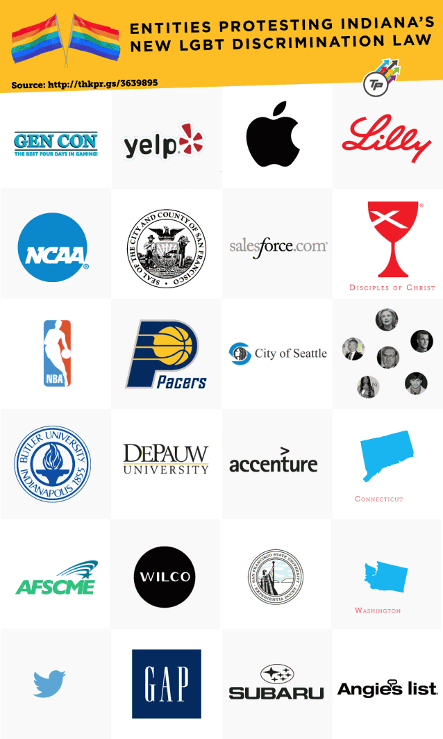 A decade later, the politics on the issue have turned 180° as is clear from the national pushback against Indiana’s effort to legalize anti-gay discrimination (in the name of religious liberty). The LGBT community and its many allies in the sports, entertainment, and business community made clear that Indiana’s law would lead them to boycott or pull business from the state.