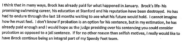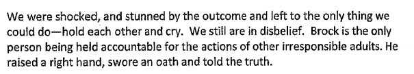 Brock’s employer: “In many ways, Brock has already paid for what happened.”