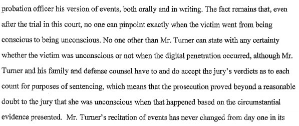 In order to convict Turner, the jury needed to decide — beyond a reasonable doubt — that the victim did not consent. Turner’s lawyers, however, still consider this an open question since the jury’s finding was based on “circumstantial evidence.”