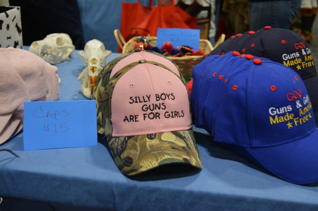 The gun manufacturers and other supplies who had booths at the NRA’s meeting did not ignore the opportunity to capitalize on the female audience. Here are some of the products for sale to women — the pink gave them away — from the sprawling 450,000 square foot exhibit hall: