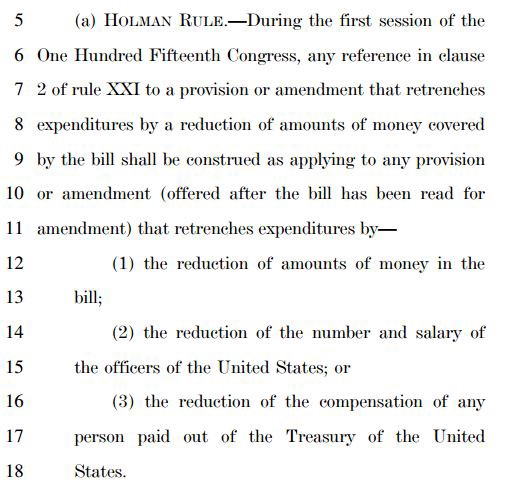 The Holman rule, named after the congressman who first proposed it in 1876, was nixed by Congress in 1983. The rule, now reinstated for 2017, gives any lawmaker the power to offer amendments to appropriations bills that could, legislatively, fire any federal employee or cut their pay down to $1 dollar, if the lawmaker so chooses.