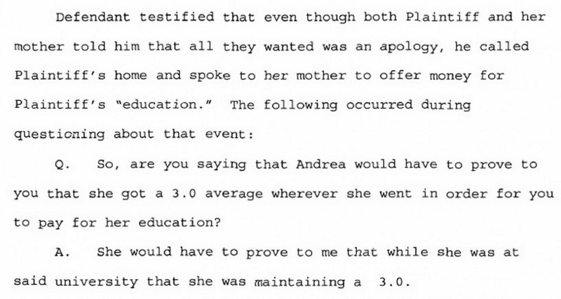 In the deposition Cosby also admits offering to give Constand money but only if she used it for college and maintained a 3.0 GPA: