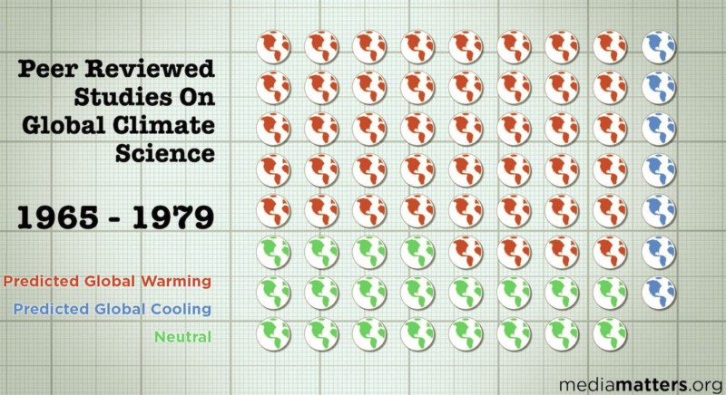 Uhh, no. Even in the 1970s predictions of of human-caused global warming “made up the bulk of scientific literature,” a major 2008 study pointed out.