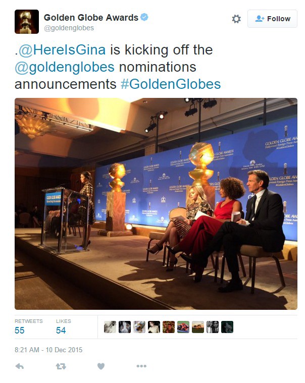 Oops, the @GoldenGlobes Twitter account thought America Ferrera was Gina RodriguezThe Golden Globes powers-that-be did a great job selecting a diverse group of actors to read the nominees: Angela Bassett, America Ferrera, Chloë Grace Moretz and Dennis Quaid did the honors. But then they did a not-so-great job of identifying Ferrera on their official Twitter account, which repeatedly misidentified her as Jane the Virgin star Gina Rodriguez, another Latina actress.