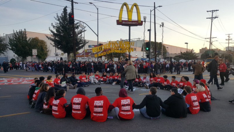 Uber drivers, fast food employees, and airport workers were also arrested outside of McDonald’s restaurants in a number of cities, including Cambridge, Chicago, Detroit, and New York City. Organizers said tens of thousands of people joined the protests.