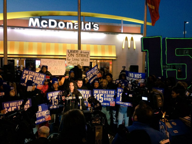 Uber drivers went on strike in more than two dozen cities. They were joined by striking hospital workers in Pittsburgh as well as a number of fast food employees across the country.