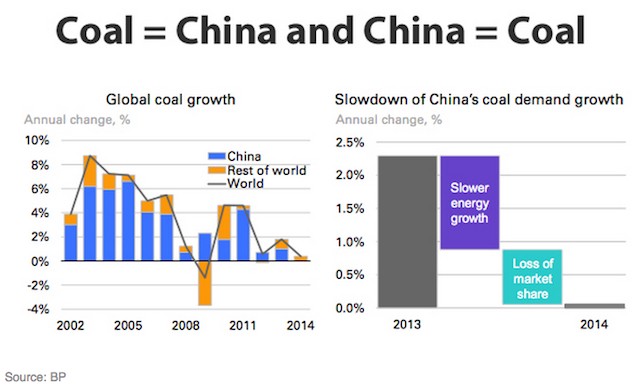 These two Chinese strategies combined are a key reason why China cut its coal consumption in 2014, the first drop this century. And since China has been the engine of the world coal market, it’s no surprise that global coal demand flatlined at 0.4 percent year over year growth in 2014.