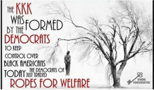 The message accompanying the offensive image relies on a number of tropes, insinuations and half-truths that are commonly used by the Democratic Party’s opponents to attack the party’s record on race. It is true, for example, that white segregationists largely identified with the Democratic Party for many years. The South was, in effect, a bloc of one-party states for most of the century following the Civil War. Claims that Democrats remain creatures of the Klan, however, misses the last half-century of American history. Democratic President Lyndon Johnson reportedly said that he feared that his party may “have lost the South for a generation” when he signed the Civil Rights Act of 1964. The Democratic Party’s recent performance in Southern elections suggests that Johnson’s prediction was insufficiently pessimistic.