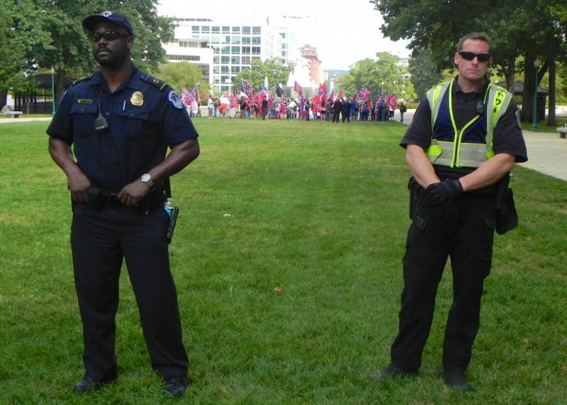Though a line of Capitol Police and several hundred feet separated the two protests, at least one protester on the pro-Confederate side expressed fear that something dangerous might happen if the two crowds collided. Jason Berry, a Civil War reenactor from Detroit, said he had wanted to bring his mixed-race 12-year-old child to the event, but decided against it.