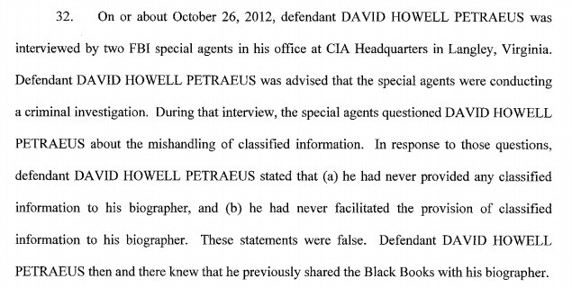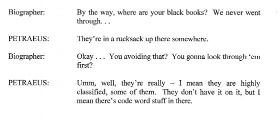Petraeus gave Paula Broadwell, his mistress and biographer, his notebooks after telling her they contained “highly classified” information. This conversation was captured on tape by Broadwell and included in the government’s statement of facts: