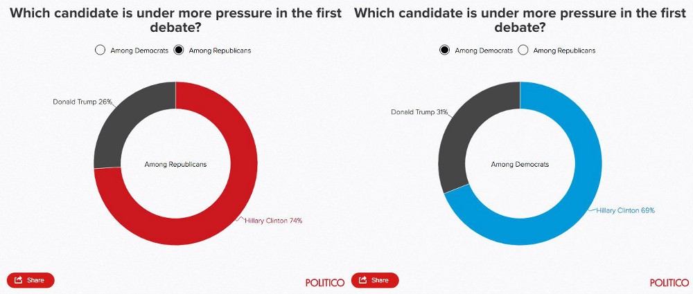 Monday morning, Politico published an “Insiders” presidential debate preview featuring interviews with a bipartisan group of political professionals from swing states. One notable tidbit is that Republicans and Democrats agree that Hillary Clinton is under more pressure tonight.