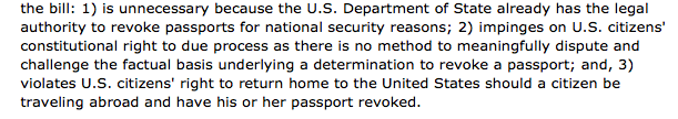 According to the bill, the Secretary of State may also “revoke a passport previously issued to any individual” who meets the same terms described in the paragraph above.