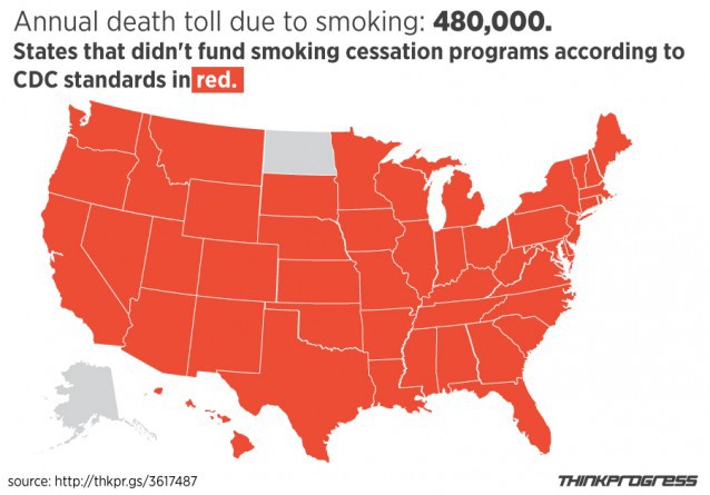 Last year, the American Lung Association urged U.S. government officials to take the steps necessary to reduce smoking rates to less than 10 percent by 2024, protect all Americans from secondhand smoke by 2019, and end smoking-related deaths. A recent report by the organization, however, shows that states have made little to no progress in meeting those goals, even with billions of dollars at their disposal.