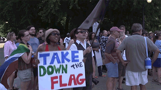 But on Saturday night, hundreds gathered in front of South Carolina’s state capital to protest the state law mandating that the most visible symbol of the Civil War fly less than 300 feet away from the capital building.