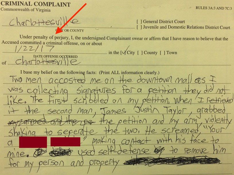 On Jan. 23, 2017, Kessler swore, under oath, that James Taylor assaulted him on Charlottesville, Virginia’s downtown pedestrian mall the previous day as Kessler gathered signatures for a petition to oust City Councilor Wes Bellamy — then the city’s only black councilor.