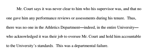 Furthermore, nobody directly supervised Court, and he did not have a single performance review during his tenure at Maryland.
