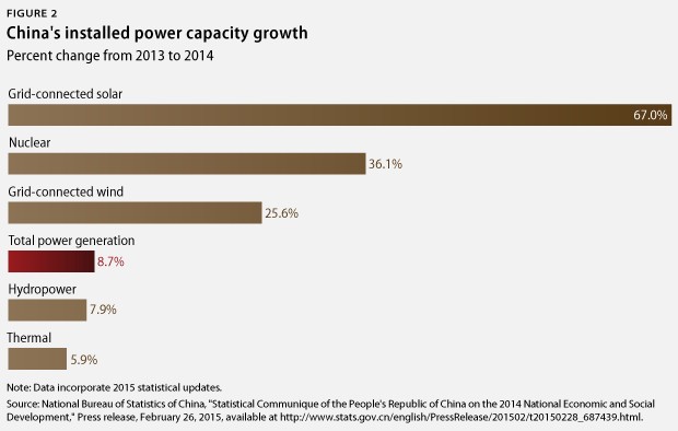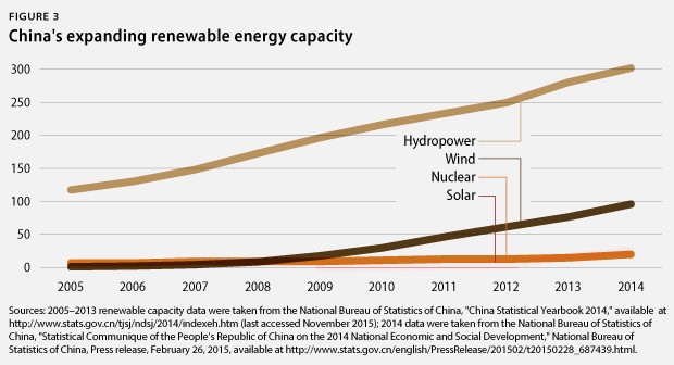 In its November 2014 announcement, China committed to “increase the share of non-fossil fuels in primary energy consumption to around 20 percent by 2030.” That clean energy pledge “will require China to deploy an additional 800–1,000 gigawatts of nuclear, wind, solar, and other zero emission generation capacity by 2030,” as the White House explained at the time. And that is “more than all the coal-fired power plants that exist in China today and close to total current electricity generation capacity in the United States.”