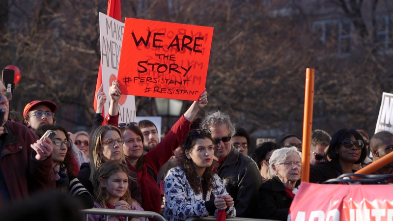 LINDA SARSOUR, Co-chair, Day Without A Woman: The precedent for a day without a woman was from our immigrant sisters and brothers who did a day without immigrants and really showed the economic power of immigrants across the country, where entire businesses and industries and many parts of the city were shut down, and the solidarity that came out with our undocumented sisters and brothers in particular. So, today we took our leadership and guidance from them.