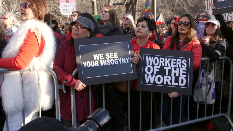 RADHIKA BALAKRISHNAN, Faculty Director of the Center for Women’s Global Leadership at Rutgers University: Today, at 1 p.m. when I shut down my computer, I felt very liberated. I left and walked over here. Though I didn’t do an all day strike, I did do a half a day strike. And I think the symbolism of a strike is about the rights of workers.