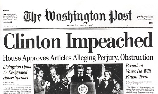Although Gingrich resigned as speaker after humiliating loses in the 1998 Congressional election, the House later impeached Bill Clinton on obstruction of justice charges.