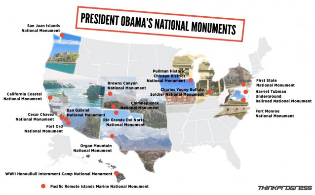 On Thursday, President Obama is expected to announce three new national monuments, adding to the 13 monuments he’s already designated during his presidency. Traveling to Illinois, Obama will officially proclaim the Pullman Historic District of Chicago, Browns Canyon in Colorado, and a former Honouliuli Internment Camp site in Hawaii to be national monuments.