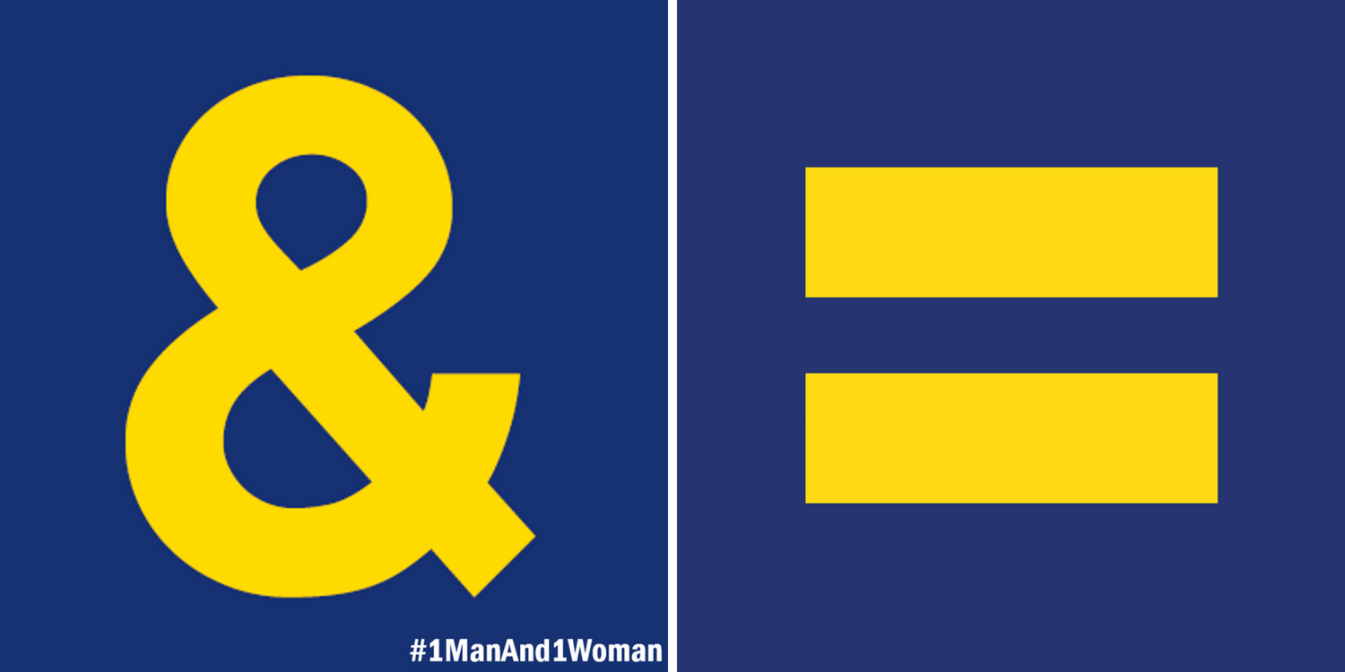 This campaign does not appear to have been well thought-out. Marriage equality means that marriage can be man & man, woman & woman, non-binary person & non-binary person, or any other combination of loving, committed humans. The ampersand works for all of them.