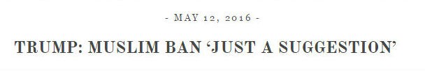 You can even use the Trump/Pence website to follow how Trump has twisted and turned on the issue throughout 2016. He strongly supported a complete Muslim ban early this year, but then pivoted to saying it was “just a suggestion” when he became the presumptive Republican presidential nominee in the spring.