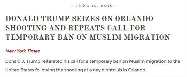 But then, following the June mass shooting at a gay nightclub in Orlando perpetrated by an American-born Muslim, Trump reverted to calling for a complete ban.