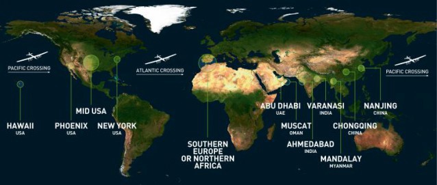 The Solar Impulse-2 has 12 scheduled stops and will be in the air for about 25 days over the course of the next five months. After Oman, the plane will head to India, China, and Myanmar, before crossing the Pacific to Hawaii. Once in the U.S. it will continue on to in Phoenix, Arizona, and JFK in New York City.