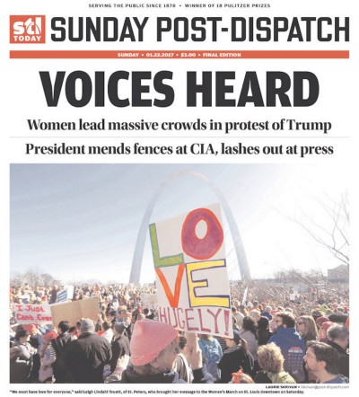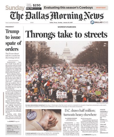 In Washington, D.C., an estimated 500,000 people descended upon the national mall to protest Trump’s presidency, a crowd estimated at three times the size of Trump’s own sparsely attended inauguration the day before. But millions more people also partook in sister marches and rallies across the country — including in the very same “real America” that Republicans claim to represent.