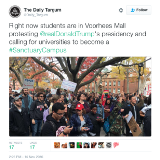 Students at colleges and universities are demanding that institutions of higher education step up as school districts have and declare their campuses sanctuary campuses. On November 17, students protested at campuses across the country, from New York’s Vassar College and Iowa State University to University of Texas San Antonio. Students asked for their universities to declare themselves sanctuaries for undocumented immigrants, so immigrant students would feel safer attending class.