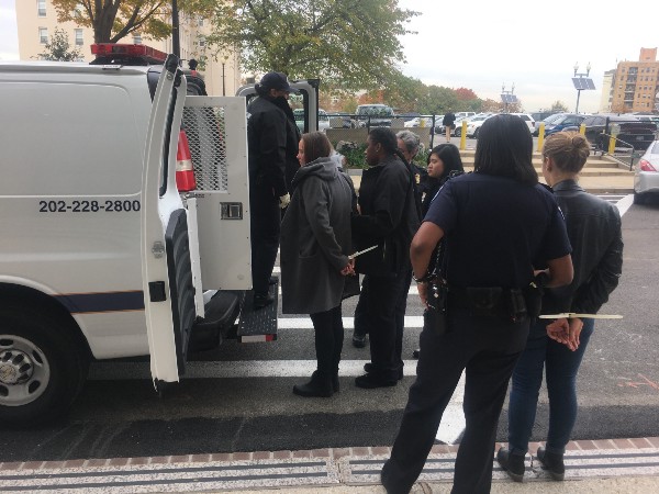 According to U.S. Capitol police, 17 people were handcuffed and taken away in a police van.