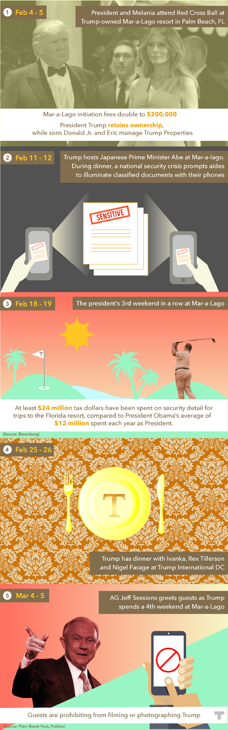 Here’s a weekend-by-weekend look at Trump’s visits to his properties: