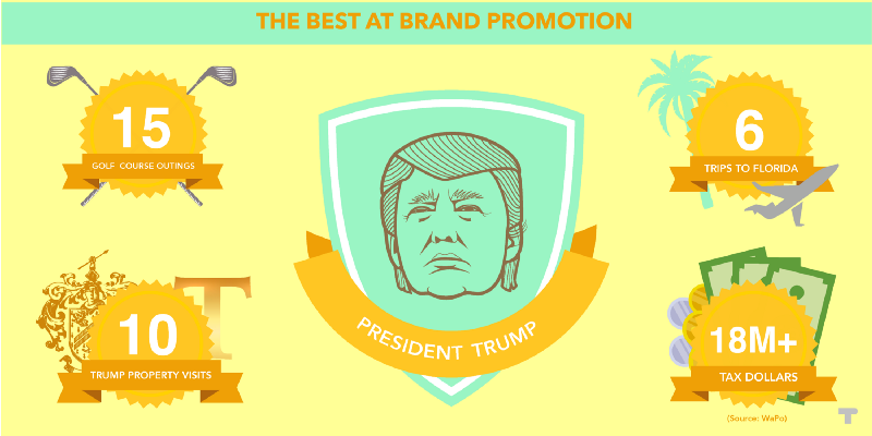During the campaign, Trump promised that he “would rarely leave the White House because there’s so much work to be done” and “would not be a president who took vacations” because “you don’t have time to take time off.” Consider that promise obliterated. And since Trump refused to divest from his company, his frequent visits to properties with his name on them also generates free publicity for his brand and profit off the presidency in an unprecedented manner.