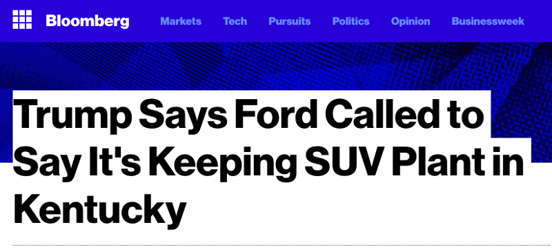 Just got a call from my friend Bill Ford, Chairman of Ford, who advised me that he will be keeping the Lincoln plant in Kentucky – no Mexico
