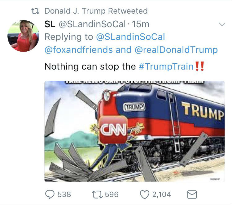 UPDATE: A White House official told CNN that Trump’s retweet of the train image was “inadvertently posted.”