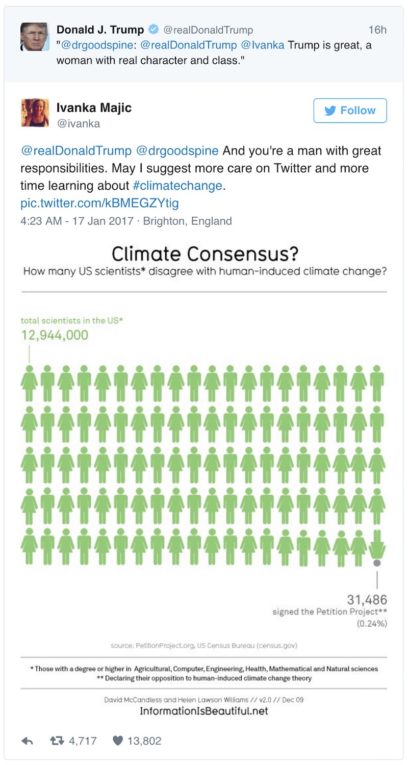 Ivanka Majic, the UK Labour party’s former digital director and the person behind the @Ivanka handle, used the momentary attention to educate the president-elect on climate change.
