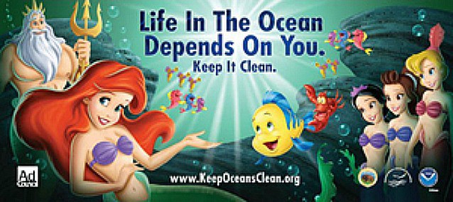 In 2008, Walt Disney Studios Home Entertainment allowed Ariel and other characters from The Little Mermaid to be featured in a “Keep Oceans Clean” ad campaign. The PSAs came out in conjunction with the release of the platinum edition DVD of the movie, so Disney got some inexpensive promotion for their trouble.