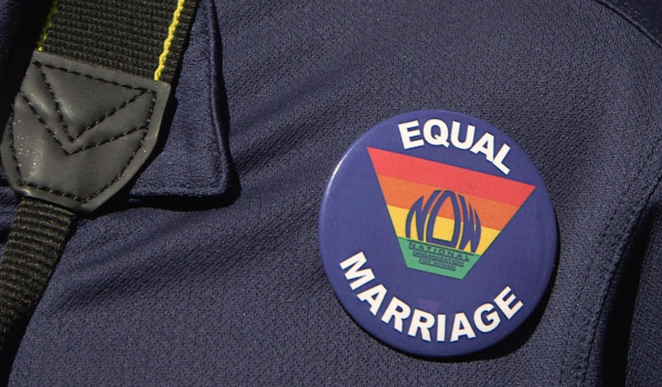 MARRIAGE SUPPORTER: I might just look at what’s written above the doorway that they would walk into — it says “equal justice under the law.” It’s in stone right above their building and that means everybody.