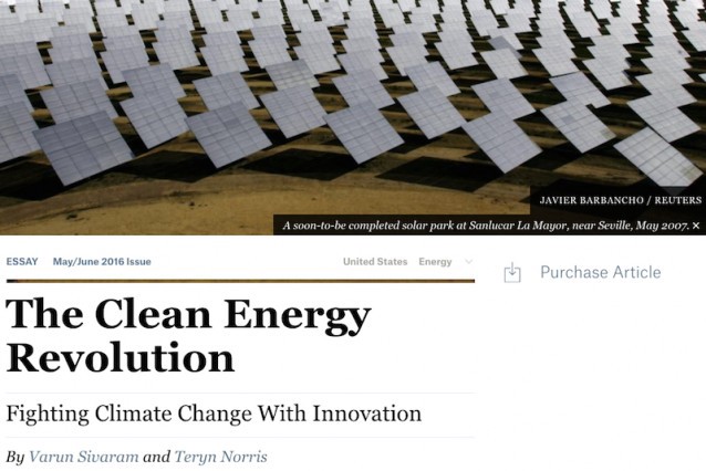 Foreign Affairs has run one of the most confused, out-of-date and error-riddled pieces ever seen on clean energy and climate change. I will fact check it here, since the editors apparently didn’t.