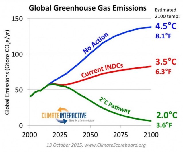 Since ClimateProgress tries not to make hand-waving statements about hard numbers related to climate policy without highly-credible citations, here is a typical CO2 pathway chart from Climate Interactive, one of the few organizations in the world with energy and CO2 models that governments and others rely on for making decisions about CO2 pledges and what can plausibly be achieved through various energy technology options.