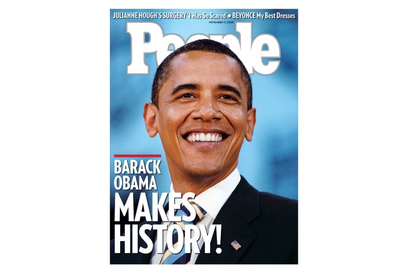 There’s a way to see the Trump cover as being carefully designed so as to convey as little enthusiasm as possible. Look at it again: The toothless smile, the conspicuous (for People) absence of an exclamation point, the use of the word “astonishing,” which one can read to mean something great or terrible. For context, compare it to this cover announcing President Obama’s victory in 2008: