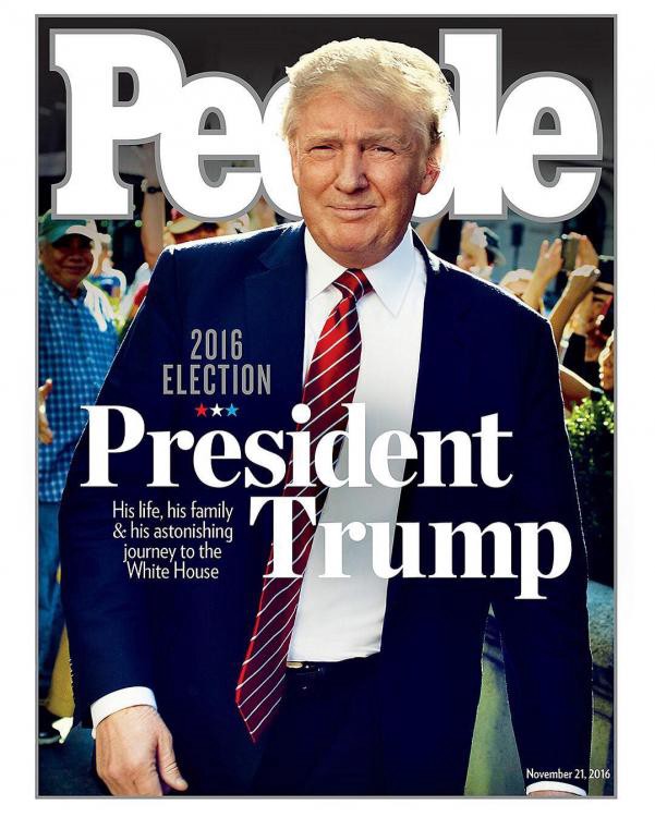 Life comes at you fast. Less than a month after People magazine published and defended reporter Natasha Stoynoff’s account of being assaulted by Donald Trump, the magazine is toasting our nation’s president-elect with this glowing cover: