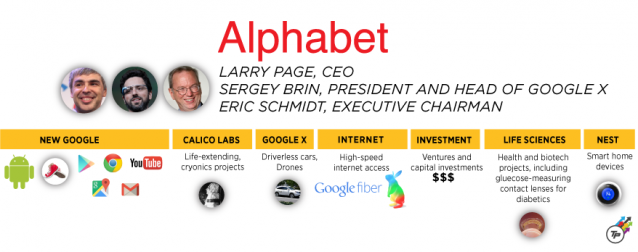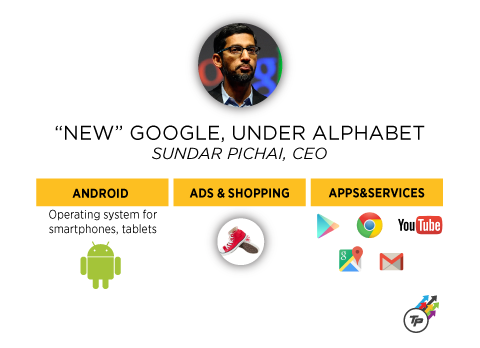 The reshuffling is more of a financial maneuver that allows Google to remain flexible, relevant and invest in a variety of fields, particularly health care, as technology advances, but it also gives Google a new face. Sundar Pichai, former Android senior vice president the brain behind Google’s Chrome browser, will replace Larry Page as CEO. Page will join fellow Google co-founder Sergey Brin and former CEO Eric Schmidt to head Alphabet.