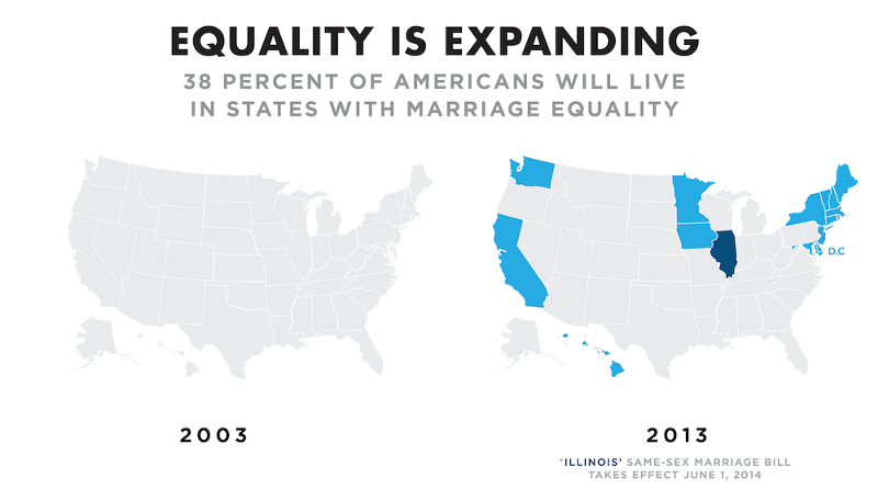 Once again, these victories are partial and by no means inevitable. Racism, sexism, homophobia, and other forms of discrimination aren’t just “going away” on their own. They’re losing their hold on us because people are working to change other people’s minds and because governments are passing laws aimed at promoting equality. Positive trends don’t mean the problems are close to solved, and certainly aren’t excuses for sitting on our hands.