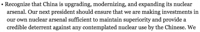 The part where he advocates a nuclear arms race with China